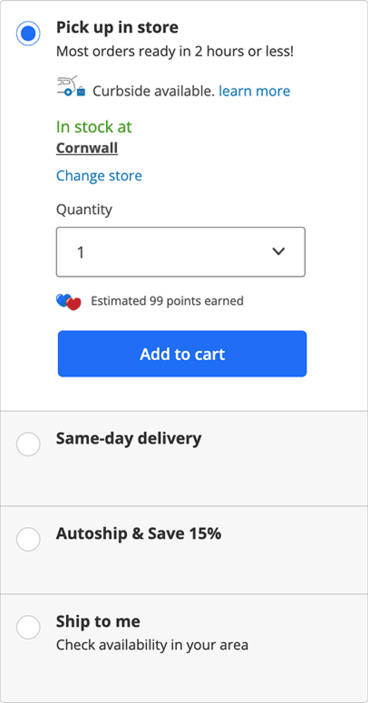 "Add to pickup" button next to the Bundle Items card assumes that user is only interested in one delivery method and requires them to pay close attention if they do want to change it at the check out.