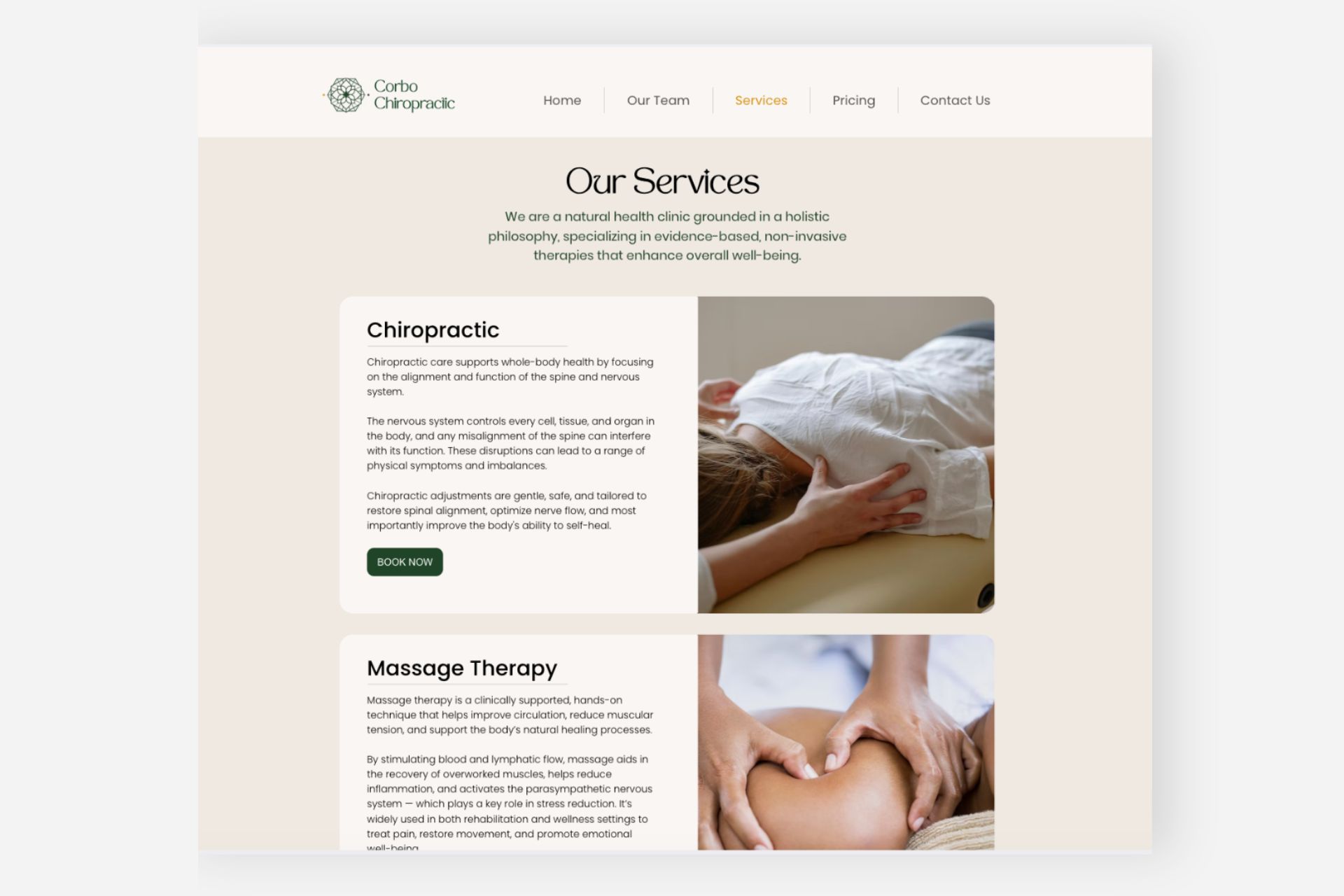 Create design that is visually appealing and in alignment with the Corbo Chiropractic brand and its target audience