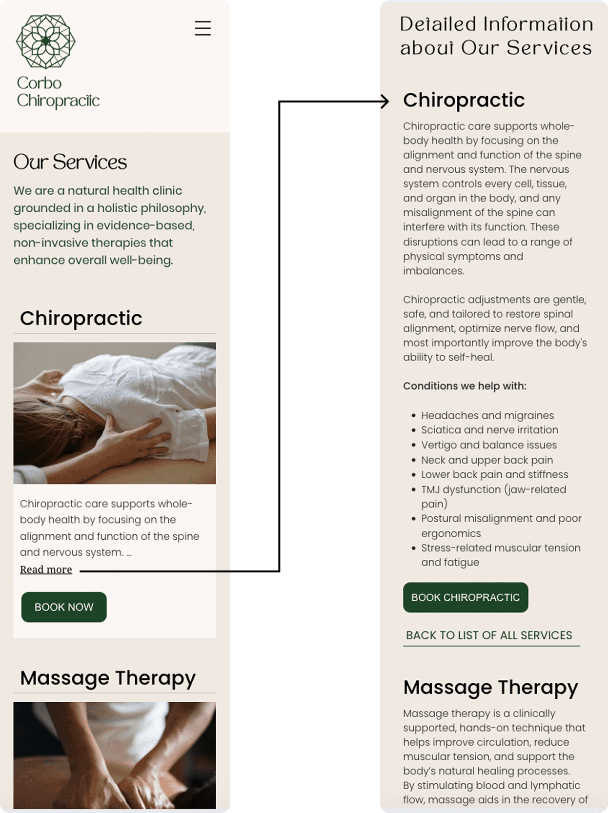Corbo Chiro had a basic foundational website with a poor navigation structure, and as a result had a few UX challenges along with inconsistent visual branding across the pages.